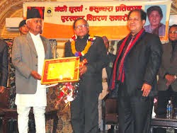 पुरस्कार वितरणक बाद समारोहकेँ सम्बोधन करैत उपराष्टूपति झा नेवारी भाषा साहित्यक संस्था सँ मैथिलीक साहित्यकार पुरस्कार प्राप्त कएला सँ दूनु भाषा बीचक मल्लकालिन सम्बन्धकेँ आओर मजबुत बनेबाक विश्वास व्यक्त कएलनि.